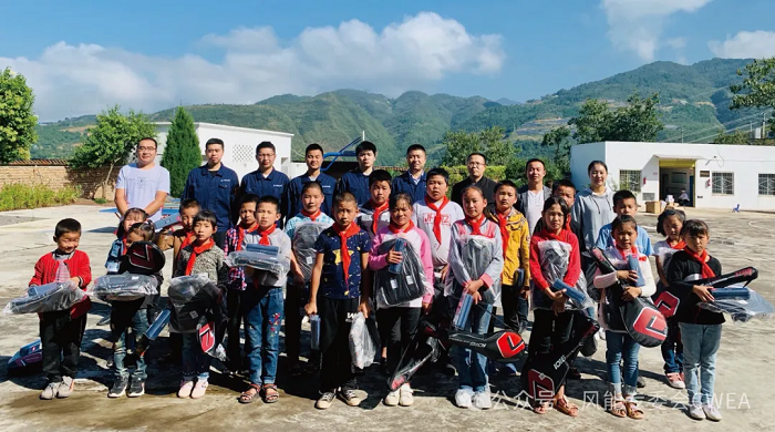 金陽索瑪花開,巨大的風電機組屹立于山頭,將原本貧瘠的荒山變成了助力鄉村振興的“金山銀山”?!按箫L車”每年可“吹出”約4。19億千瓦時的清潔能源,每年可為當地政府增加2000多萬元的稅收,建設期創造出500多個就業崗位。六一兒童節期間,金陽風電場的現場運維團隊為偏遠學校的學生們發放教學物資和生活用品,青年志愿者們向小朋友們介紹風電機組模型,小朋友們被“大風車”吹出的清潔能源深深吸引,“小腦袋們”圍著志愿者老師嘰嘰喳喳好奇地詢問風力發電的種種細節。